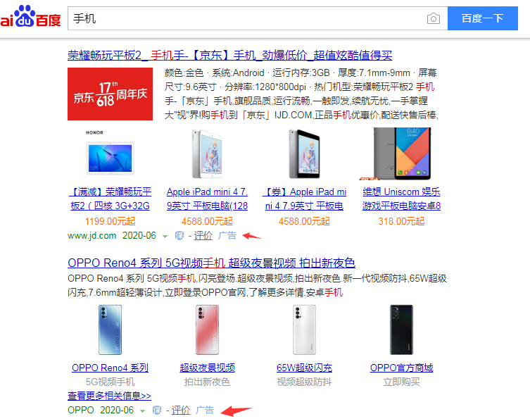 CPC是英文Cost Per Click的縮寫,是網絡廣告中常見的按每次點擊付費方式,如果我們在百度搜索一個關鍵詞“手機”會推送右下角標記帶廣告的幾條搜索結果。我們點擊一次,進入網站。商家就會扣費一次,點擊多次扣費多次,當然百度也有反作弊監(jiān)控,避免廣告惡意點擊廣告。