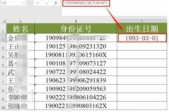 K20指身份證所在的單元格,7代表從第7個(gè)字符開始截取8個(gè)字符。19990808取出來